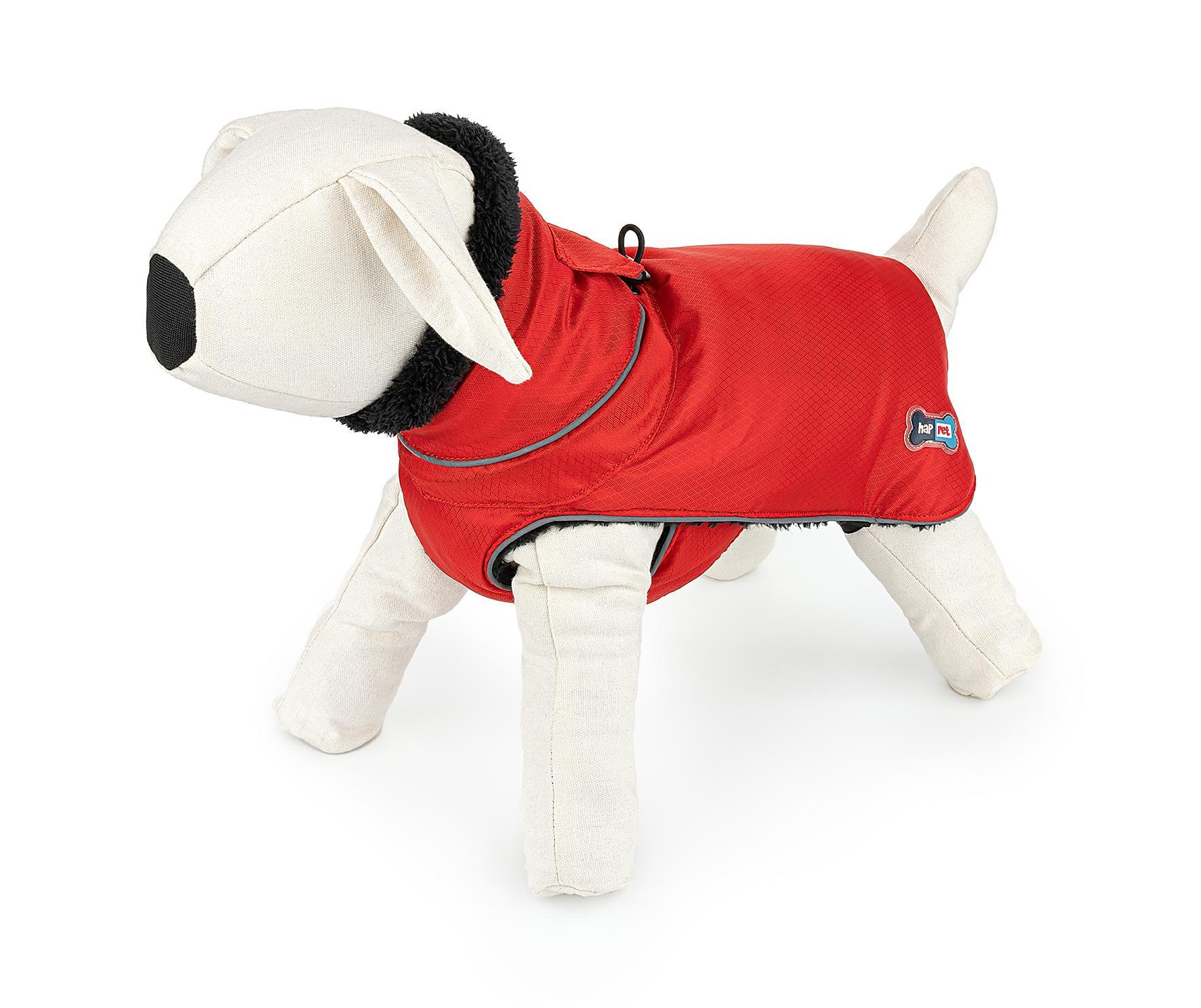 Okrycie dla psa z miękkim kołnierzem wspomoże naszego pupila warstwą oddychającego, trzymającego ciepło materiału. Jego rozłożysty kształt i wysunięty szeroki kołnierz pozwalają na ochronę jak największej powierzchni ciała psa, bez niepotrzebnego krępowania ruchów. Ubranko łatwo zapina się paskami na rzepy, które umieszczone są na klatce piersiowej psa. Dodatkowo, materiał z którego zostało wykonane jest wodoodporne i można prać je w pralce w temperaturze 30 stopni. Dostępne są rozmiary XS (25cm), XS (30cm), S (40cm), M (50cm), L (60cm) oraz kolory granatowy i czerwony.