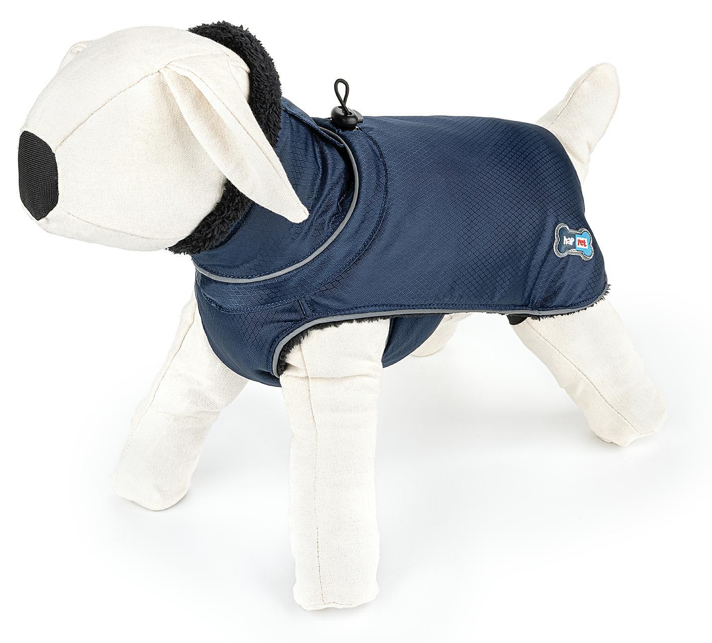 Okrycie dla psa z miękkim kołnierzem wspomoże naszego pupila warstwą oddychającego, trzymającego ciepło materiału. Jego rozłożysty kształt i wysunięty szeroki kołnierz pozwalają na ochronę jak największej powierzchni ciała psa, bez niepotrzebnego krępowania ruchów. Ubranko łatwo zapina się paskami na rzepy, które umieszczone są na klatce piersiowej psa. Dodatkowo, materiał z którego zostało wykonane jest wodoodporne i można prać je w pralce w temperaturze 30 stopni. Dostępne są rozmiary XS (25cm), XS (30cm), S (40cm), M (50cm), L (60cm) oraz kolory granatowy i czerwony.