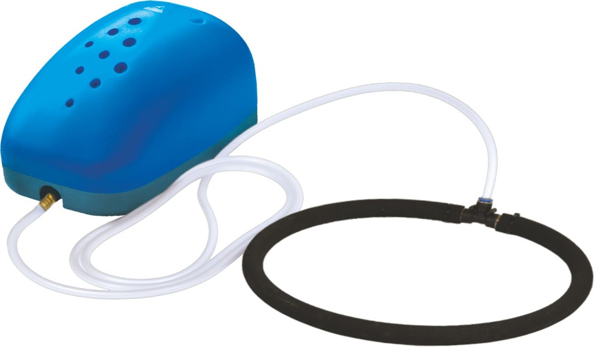 Zestaw idealnie sprawdzi się w przypadku niewielkich zbiorników wodnych. Dodatkowo w komplecie znajduje się długi wężyk oraz dyfuzor, służący do rozdrabniania pęcherzyków powietrza w zbiorniku wodnym. Dyfuzor zbudowany jest z porowatej, miekkiej gumy, przez co jest bezpieczny dla ryb i generuje bardzo dużą ilość małych pęcherzyków powietrza. Nie wymaga dodatkowego obciążenia, po włożeniu do wody tonie samoczynnie.