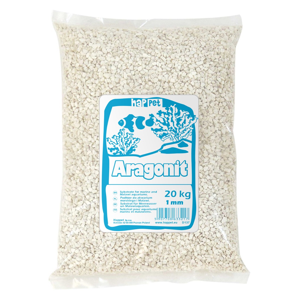 Piasek aragonitowy do akwarium. Sprawdzi się w zbiornikach morskich, a także słodkowodnych o wyższym pH (jak Malawi, Tanganika czy Wiktoria). Dżięki jasnemu kolorowi będzie świetnie wyglądać w twoim akwarium i doda mu naturalnego światła.