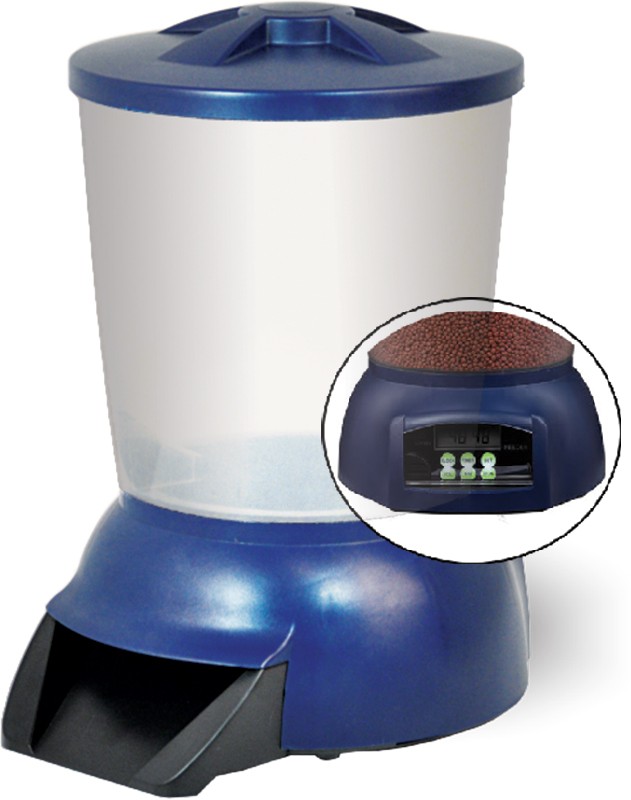 Karmnik automatyczny, który może podawać pokarm do 6 razy dziennie według regularnego planu. Dawki pokarmu bardzo łatwo można regulować oraz zatrzymywać całkowicie. Istnieje możliwość ręcznych ustawień karmień. Zaprojektowany do zastosowań na zewnątrz budynku, odporny na działania atmosferyczne. Karmik działa na baterie 6V (4×1.5V). Zdejmowalna pokrywa oraz pojemnik na pokarm ułatwia czyszczenie urządzenia. Automatyczny karmnik idealnie nadaje się do karmienia ryb podczas naszej nieobecności w domu, podczas urlopu i wakacji. Posiada dwie możliwości montażu: można zamontować na brzegu oczka wodnego na wsporniku lub przykręcić.