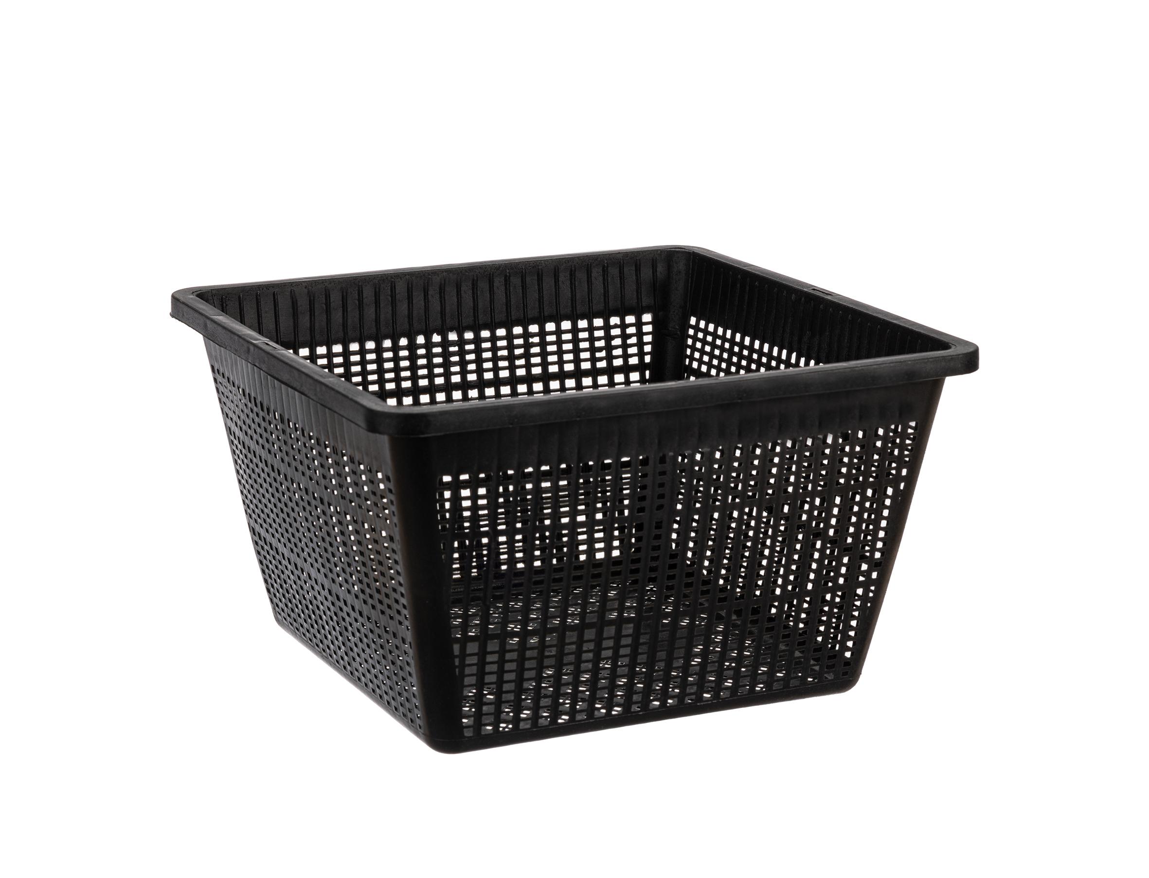 Ażurowy kosz utrzymuje bryłę korzeniową roślin w całości, zapobiega wypłukiwaniu podłoża oraz ułatwia wyjmowanie roślin, np. przy czyszczeniu stawu.