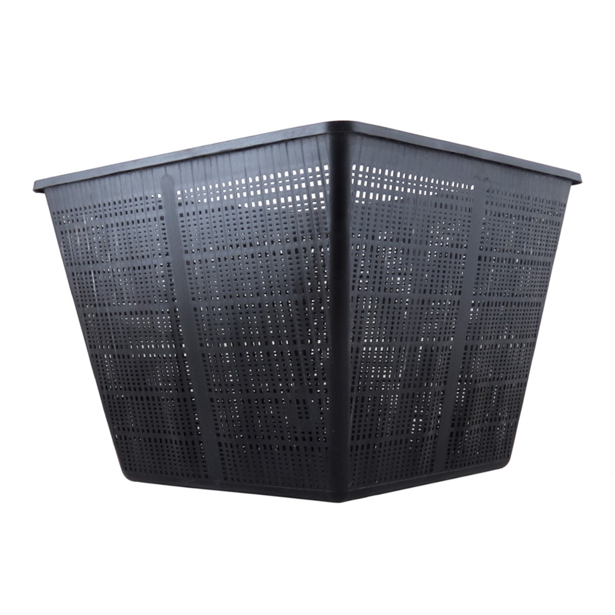 Ażurowy kosz utrzymuje bryłę korzeniową roślin w całości, zapobiega wypłukiwaniu podłoża oraz ułatwia wyjmowanie roślin, np. przy czyszczeniu stawu.