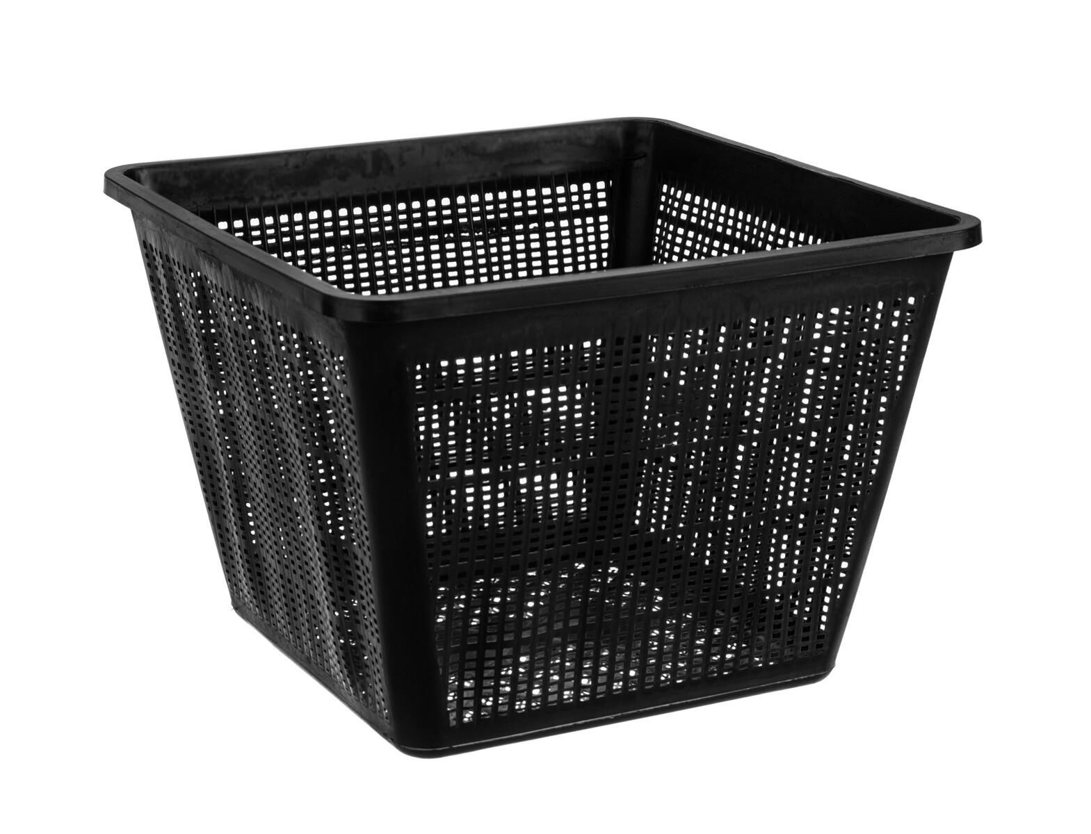 Ażurowy kosz utrzymuje bryłę korzeniową roślin w całości, zapobiega wypłukiwaniu podłoża oraz ułatwia wyjmowanie roślin, np. przy czyszczeniu stawu.