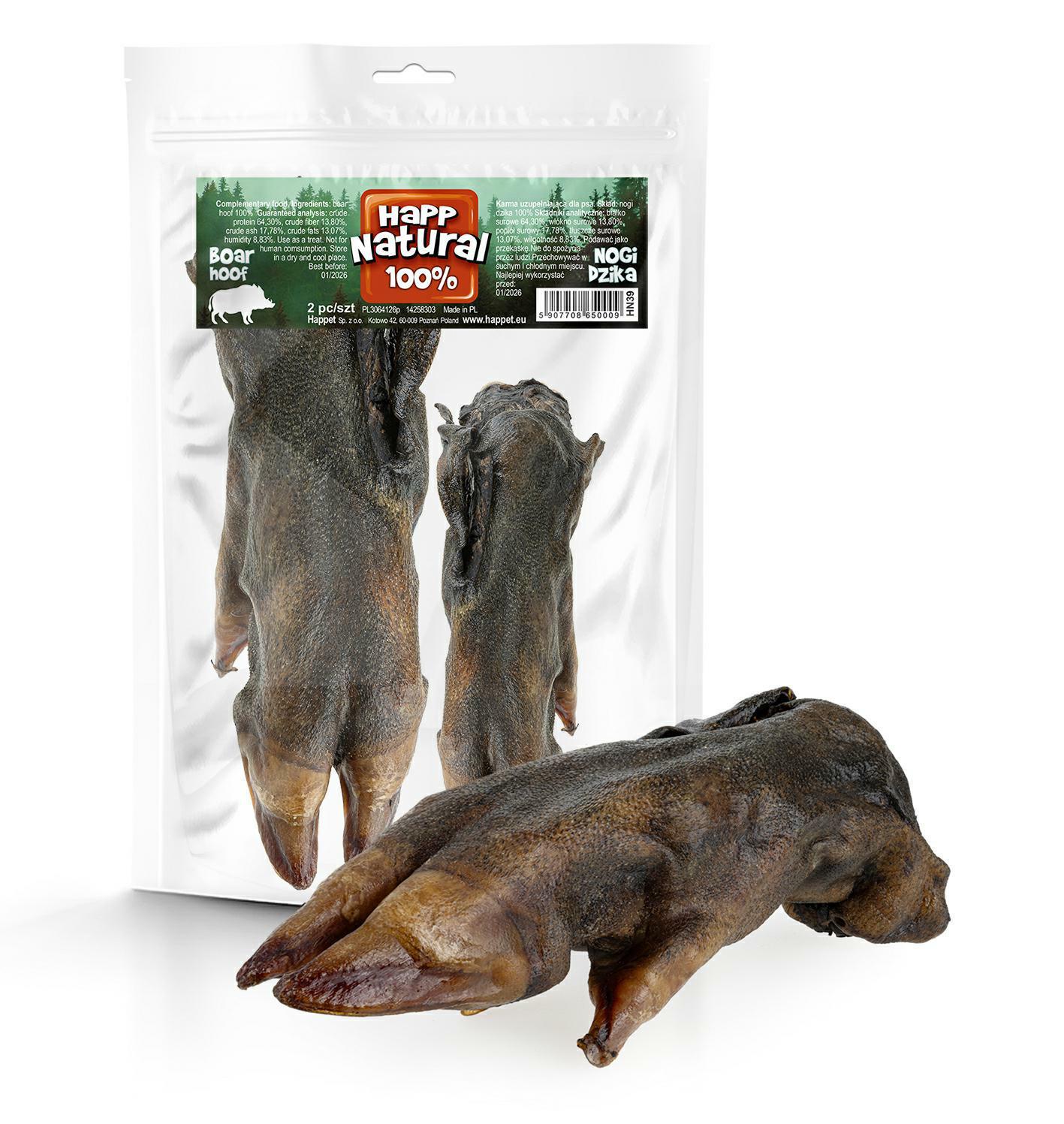 Nasze kopyta dzika są starannie przygotowywane, aby zapewnić bezpieczeństwo i jakość. Są one doskonałym źródłem naturalnych białek i innych składników odżywczych, co czyni je zdrowym wyborem dla Twojego psa. Regularne gryzienie i żucie kopyta dzika pomaga w naturalnym czyszczeniu zębów psa, redukuje stres i pomaga w utrzymaniu dobrej kondycji jamy ustnej.