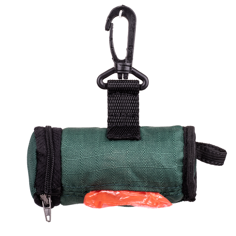 Poręczne i praktyczne etui zamykane na zamek, służące do przechowywania woreczków na psie odchody. Dzięki zastosowaniu plastikowego karabińczyka, z łatwością można przymocować je do smyczy, spodni czy plecaka. Natomiast otwór umieszczony po środku umożliwia sprawne wyciągnięcie woreczka. Etui to bardzo przydatne akcesorium dla każdego właścieciela psa, dzięki niemu woreczki będą zawsze pod ręką, pozwalając na natychmiastowe posprzątanie po zwierzaku podczas spaceru.