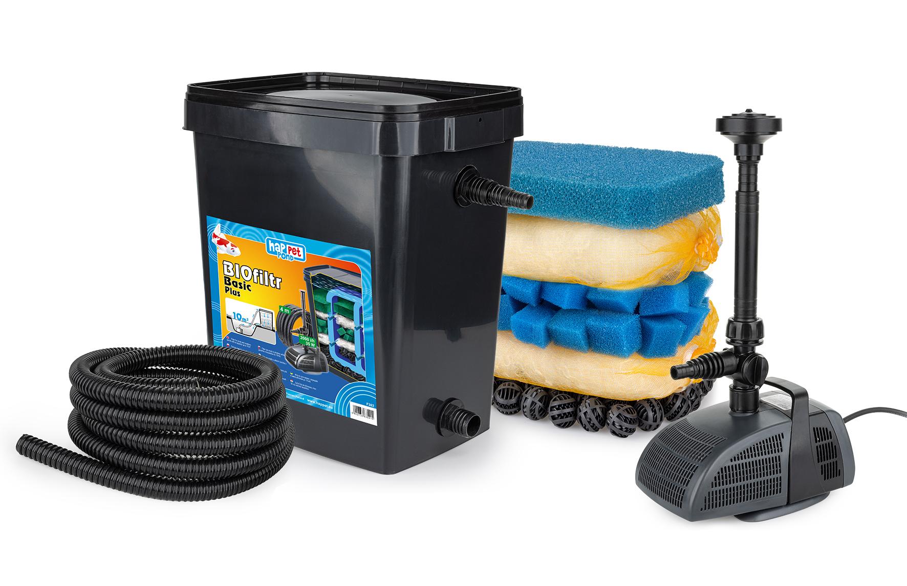 BIOfiltr Basic Plus to podstawowy, kompletny zestaw filtracyjny do oczka wodnego lub stawu. W zestawie znajduje się optymalna pompa o mocy 2000l/h oraz niezaginający się wąż o długości 4m, która w połączeniu z filtrem jest w stanie zaspokoić oczko wodne o pojemności do 10 000 l.