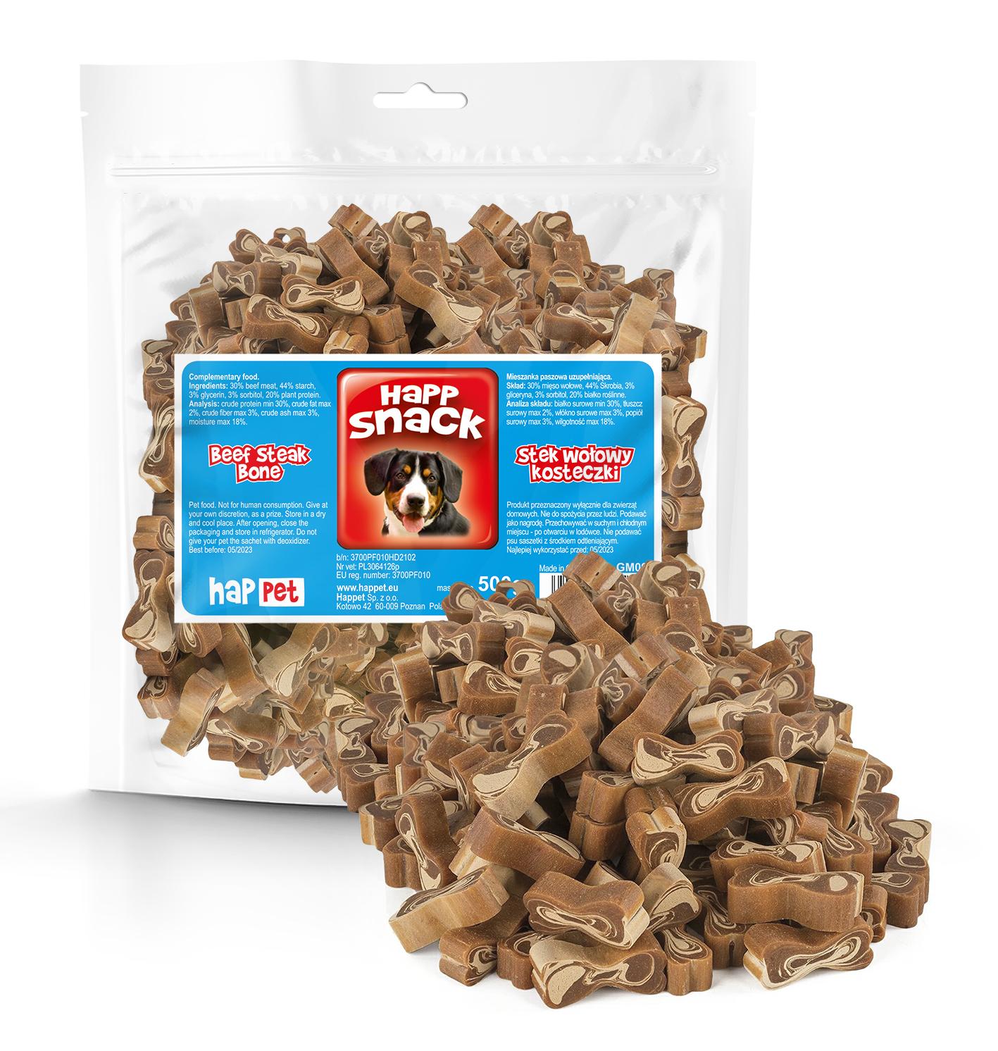Zdrowa przekąska dla psów wszystkich ras w wieku powyżej 4 miesięcy. Stek wołowy kosteczki jest naturalnym źródłem kreatyniny, wspomagającej pracę i regenerację mięśni oraz więzadeł, a także hemowego żelaza, zapobiegającego niedokrwistości (anemii). Niska zawartość tłuszczu czyni produkt idealnym dla psów, które z różnych przyczyn (nadwaga, choroby trzustki i wątroby) wymagają ubogotłuszczowej diety. Bogaty w łatwo przyswajalne białko, sprzyja prawidłowemu wzrostowi i rozwojowi oraz regeneracji.