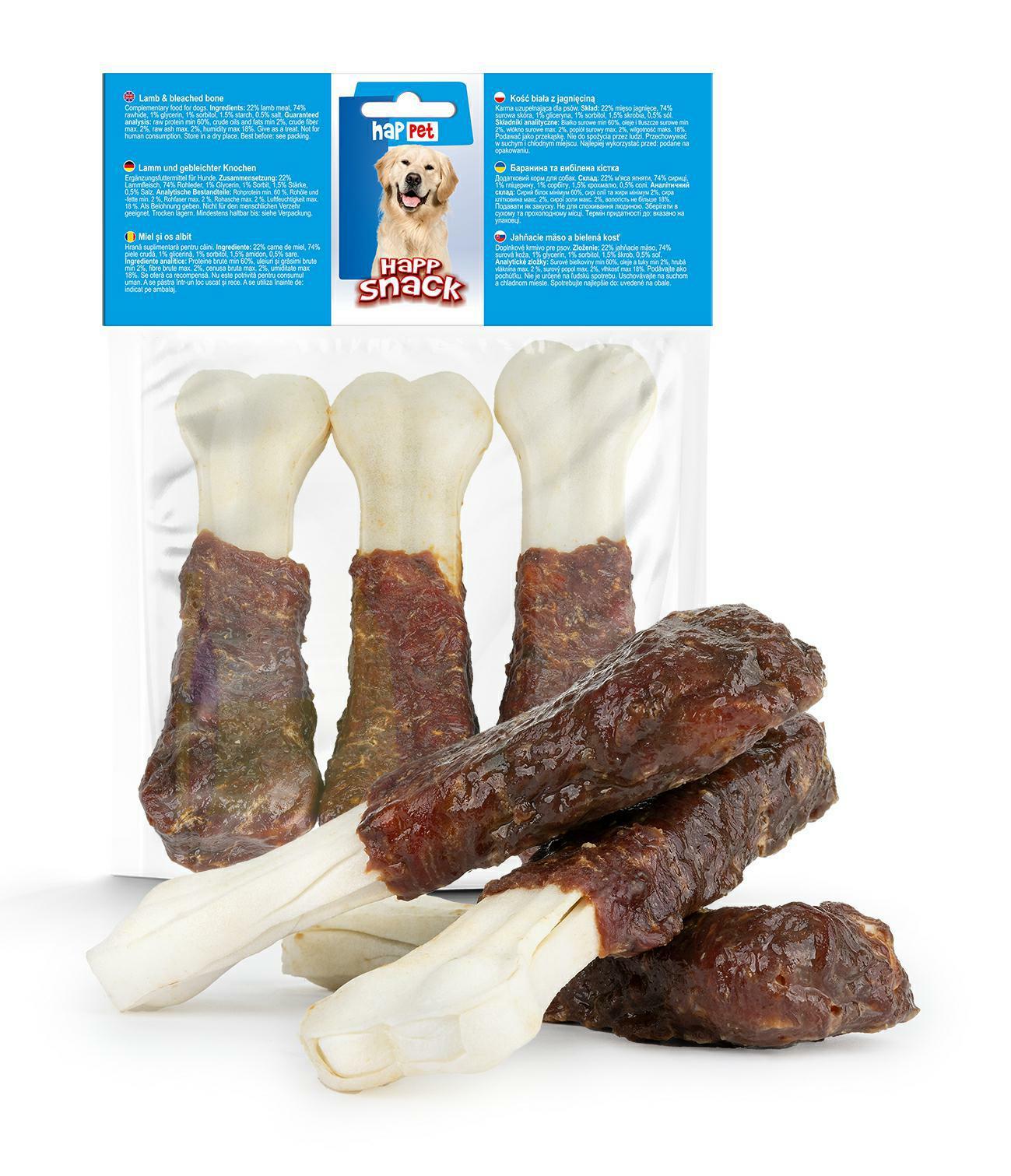 Biała, prasowana kość ze skóry wołowej owinięta mięsem jagnięcym.