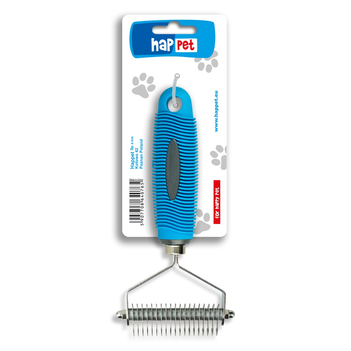 Grzebień do usuwania kołtunów powinien posiadać każdy opiekun długowłosego zwierzęcia. Za pomocą tego urządzenia można pozbyć się nawet najbardziej uciążliwych kołtunów. Ostro zakończone 19 zębów skutecznie rozetnie splątaną sierść. Gumowa, antypoślizgowa rączka zapewnia wysoki komfort pracy. Grzebień ten nie powinien być podstawowym narzędziem pielęgnacji sierści- należy go stosować tylko w przypadku bardzo splątanej sierści, po poprzednim przeczesaniu szczotką lub grzebieniem.