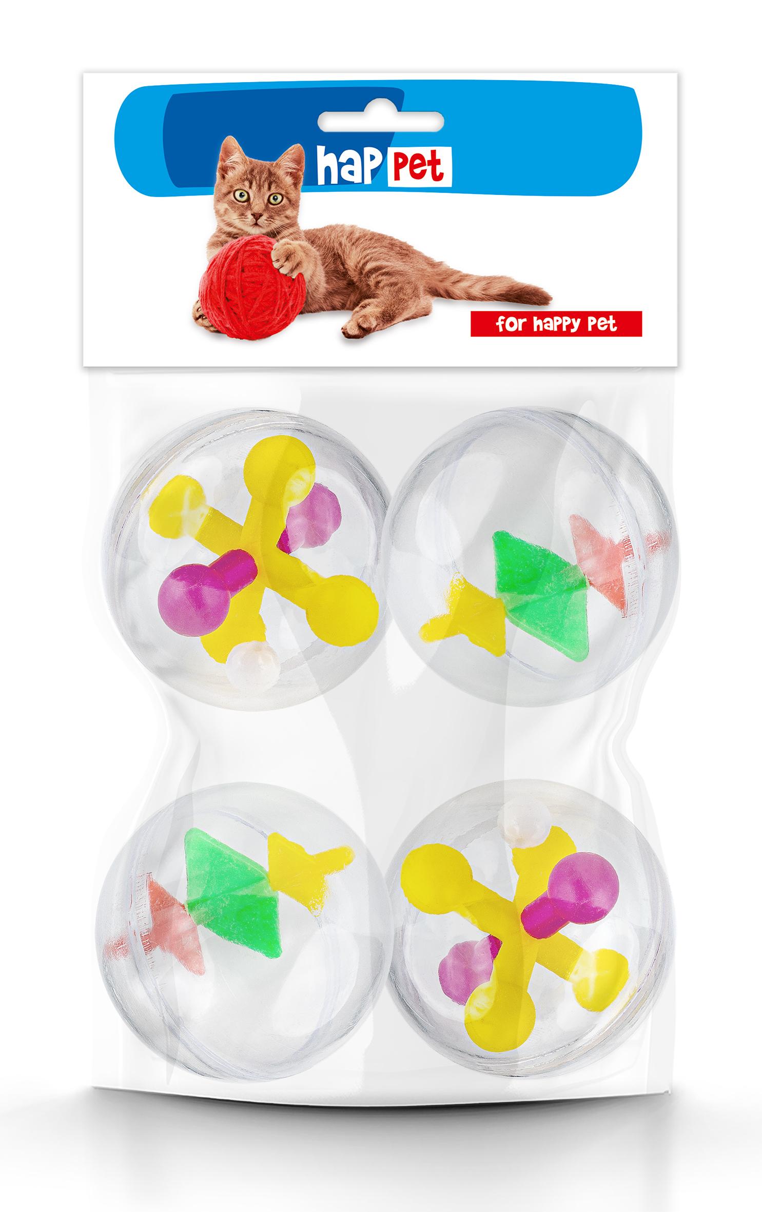 Piłeczki wykonano z przezroczystego plastiku. Wewnątrz nich znajdują się barwne, różnokształtne dzwoneczki wydające dźwięki podczas zabawy. Produkt pobudza instynkt łowiecki u nawet najbardziej leniwych kocich pupili. Piłki są bardzo wytrzymałe i odporne na kocie łapki i zęby.