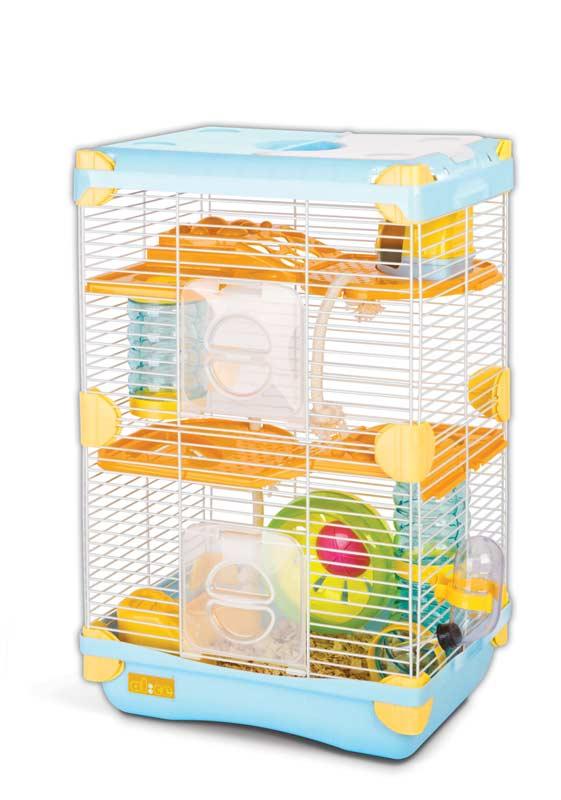 Gremi Adventure Land składa się z klatki drucianej i plastikowej górnej pokrywy oraz podstawy. Dwupiętrowa, wyposażona w kołowrotek, 2 tunele, 2 półki, 2 domki, 2 linki, miseczkę i poidełko, klatka jest bardzo atrakcyjna dla chomików, które potrzebują dużo ruchu. Zwierzęta mają w niej bardzo dużo przestrzeni i elementów, które umożliwiają swobodną zabawę. Dzięki zastosowaniu specjalnych plastikowych zacisków do łączenia ścianek, montaż klatki jest bezproblemowy. Można ją otwierać zarówno od góry, jak i z boku, gdzie znajdują się plastikowe drzwiczki. Dostępna w trzech różnych kolorach.