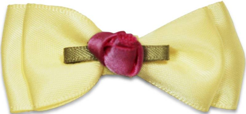 Żółta kokardka z kwiatkiem na środku to obowiązkowa ozdoba każdego psiego eleganta.