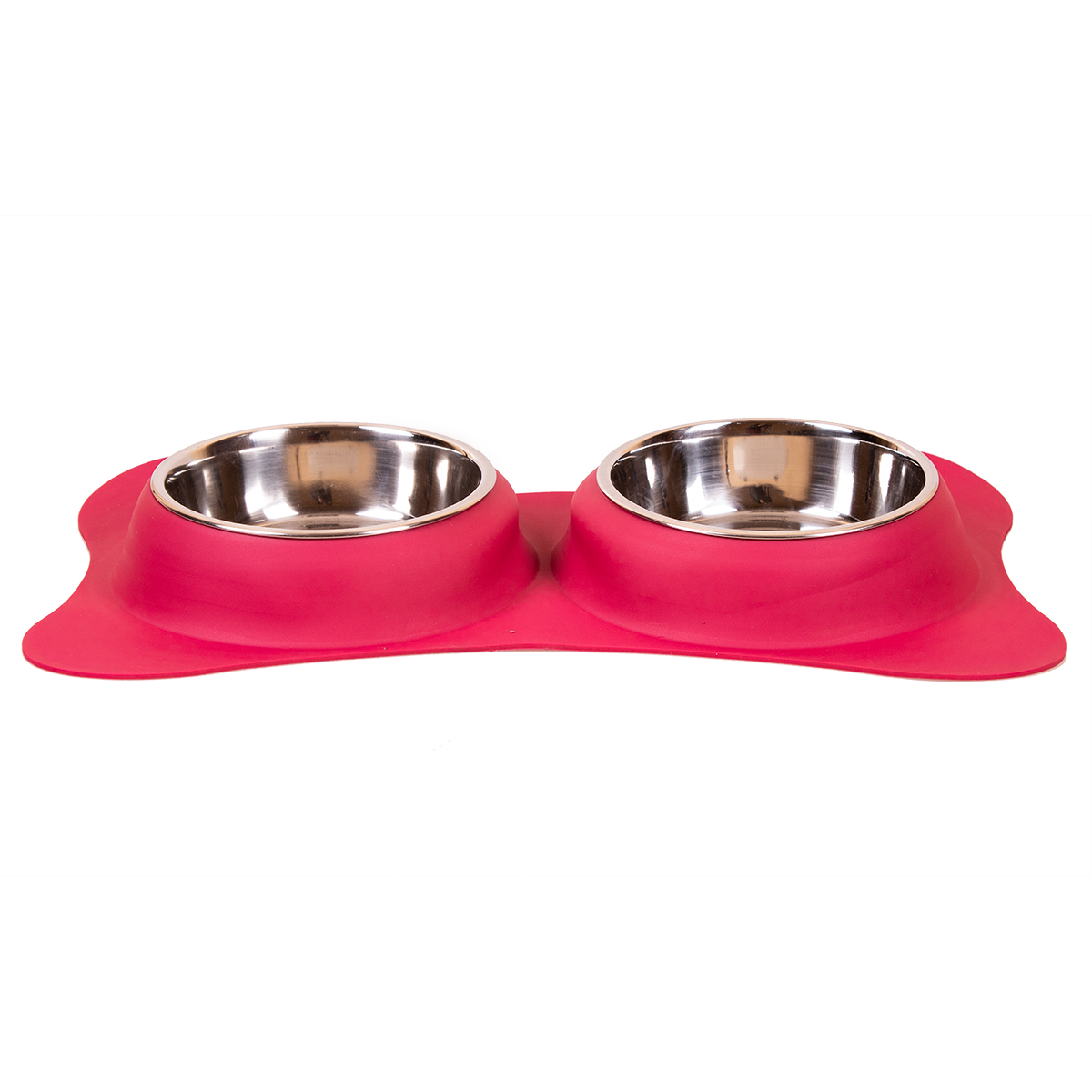 Miski są łatwe w czyszczeniu – wystarczy wyjąć je z obudowy i umyć pod bieżącą wodą lub w zmywarce. Silikonowa mata z nieckami zapobiega przesuwaniu się misek, rozlewaniu wody i rozsypywaniu karmy.