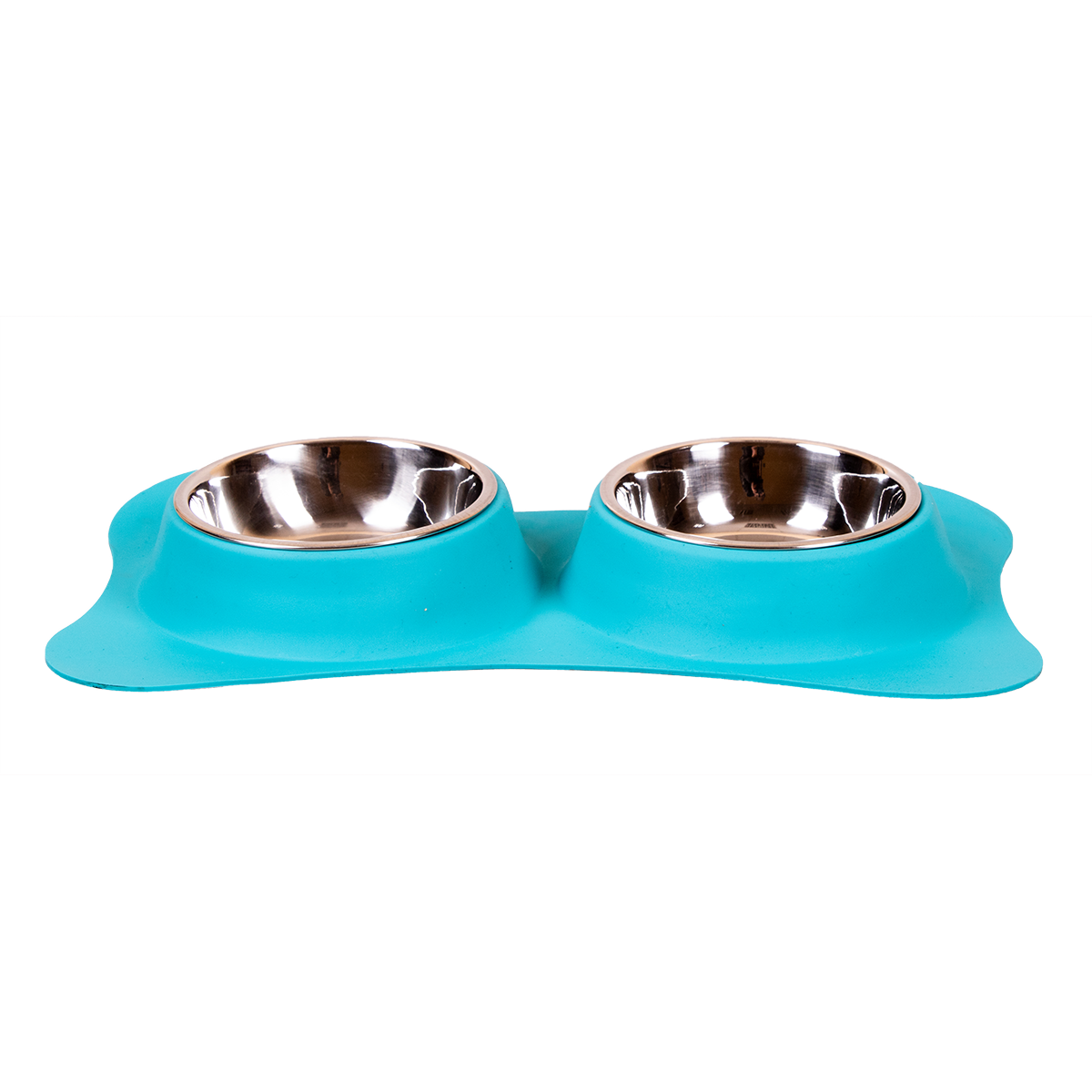 Komplet zawiera dwie okrągłe, metalowe miski na sylikonowej podkładce o błyszczącym wykończeniu.