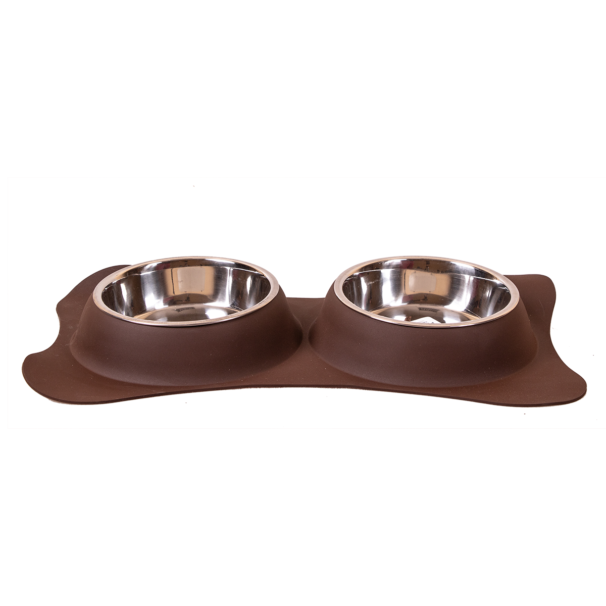 Miski są łatwe w czyszczeniu – wystarczy wyjąć je z obudowy i umyć pod bieżącą wodą lub w zmywarce. Silikonowa mata z nieckami zapobiega przesuwaniu się misek, rozlewaniu wody i rozsypywaniu karmy.
