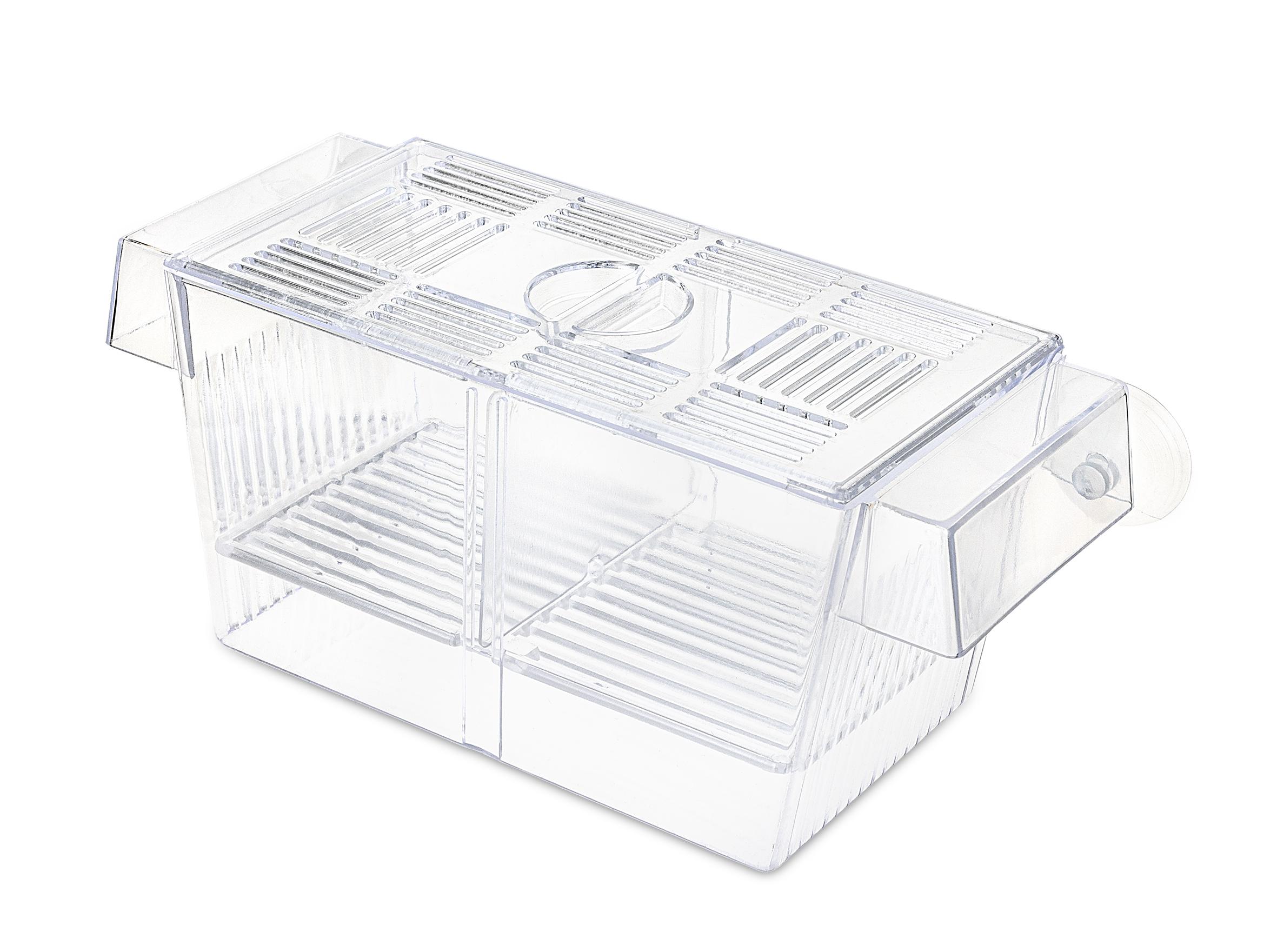 Pływający duży kotnik dla ryb żyworodnych (gupik, molinezja, mieczyk, platynka). Młode nowonarodzone ryby opadając na dno przedostają się przez ruszt