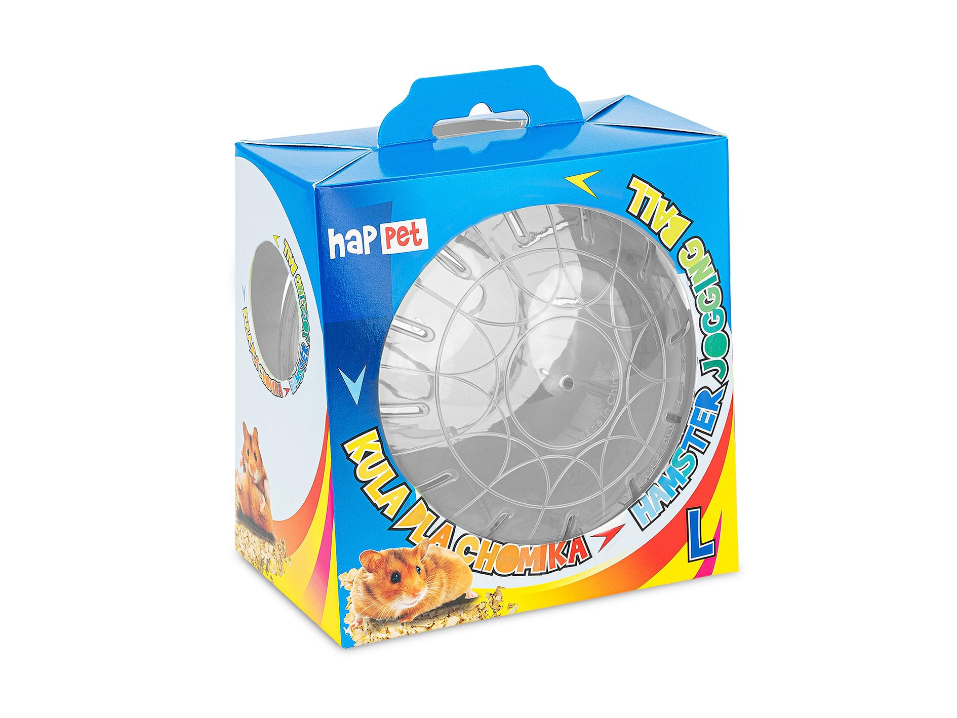 Plastikowa, transparentna kula z otworami wentylacyjnymi dla chomików i innych małych gryzoni.