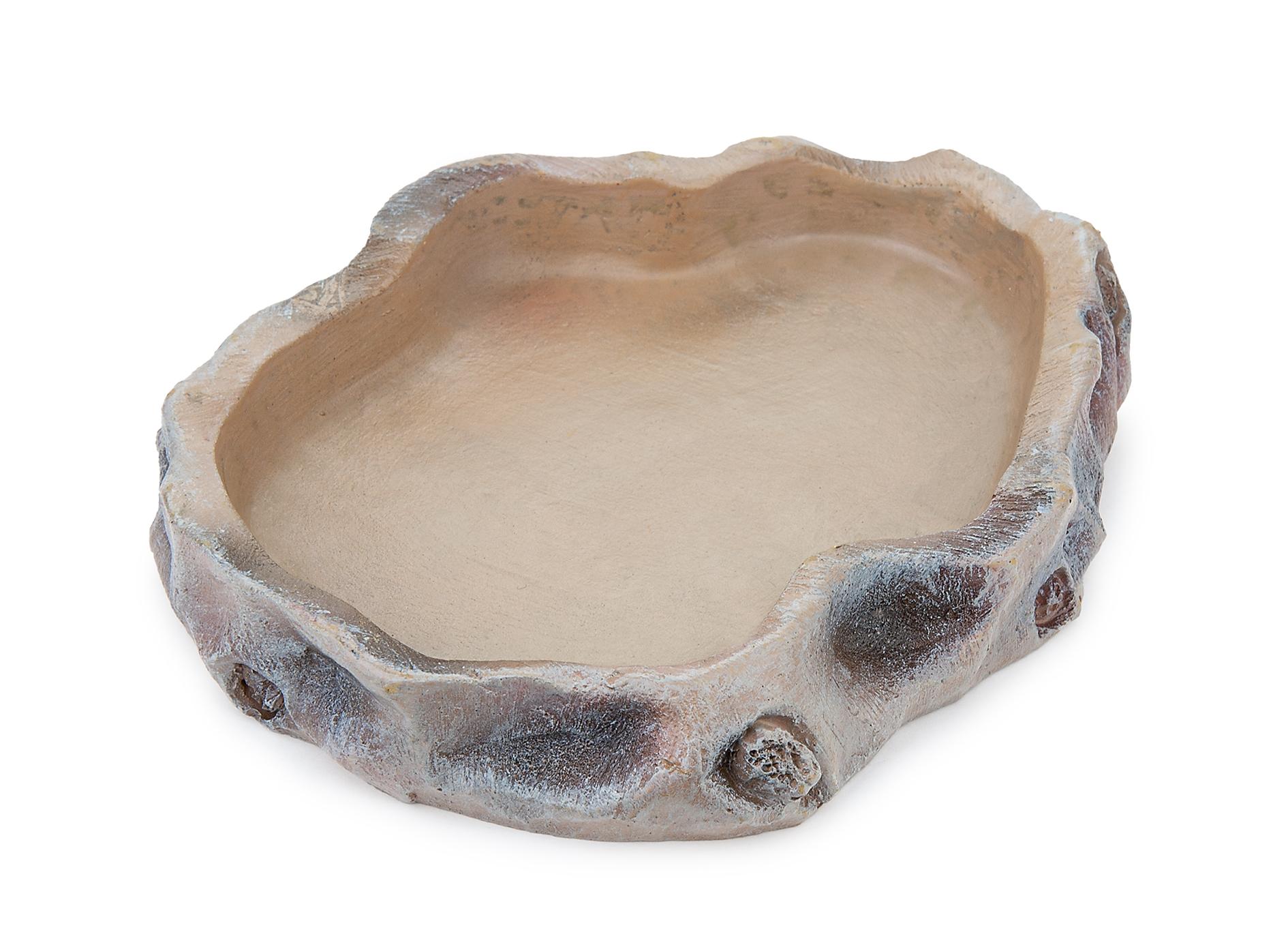 Estetycznie wykonana miska do terrarium stylizowana na kamienie, świetnie wtapia się w otoczenie aranżowane na naturalne środowisko.