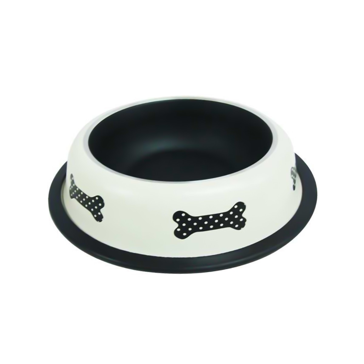 Zamieszczona jest na antypoślizgowej, gumowej obręczy, która zapobiega przesuwaniu, a kształt miski utrudnia jej przewrócenie.