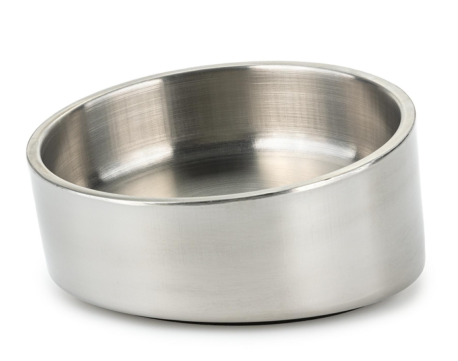 Podwójne ścianki miski sprawiają, że waży ona więcej niż standardowa miska i trudniej jest ją przesunąć czy przewrócić. Gumowa podstawka dodatkowo stabilizuje produkt i zwiększa wygodę użytkowania. Podwójne ścianki utrzymują również temperaturę ciepłych posiłków. Miska jest wykonana ze stali nierdzewnej, odporna na uszkodzenia i łatwa w czyszczeniu.