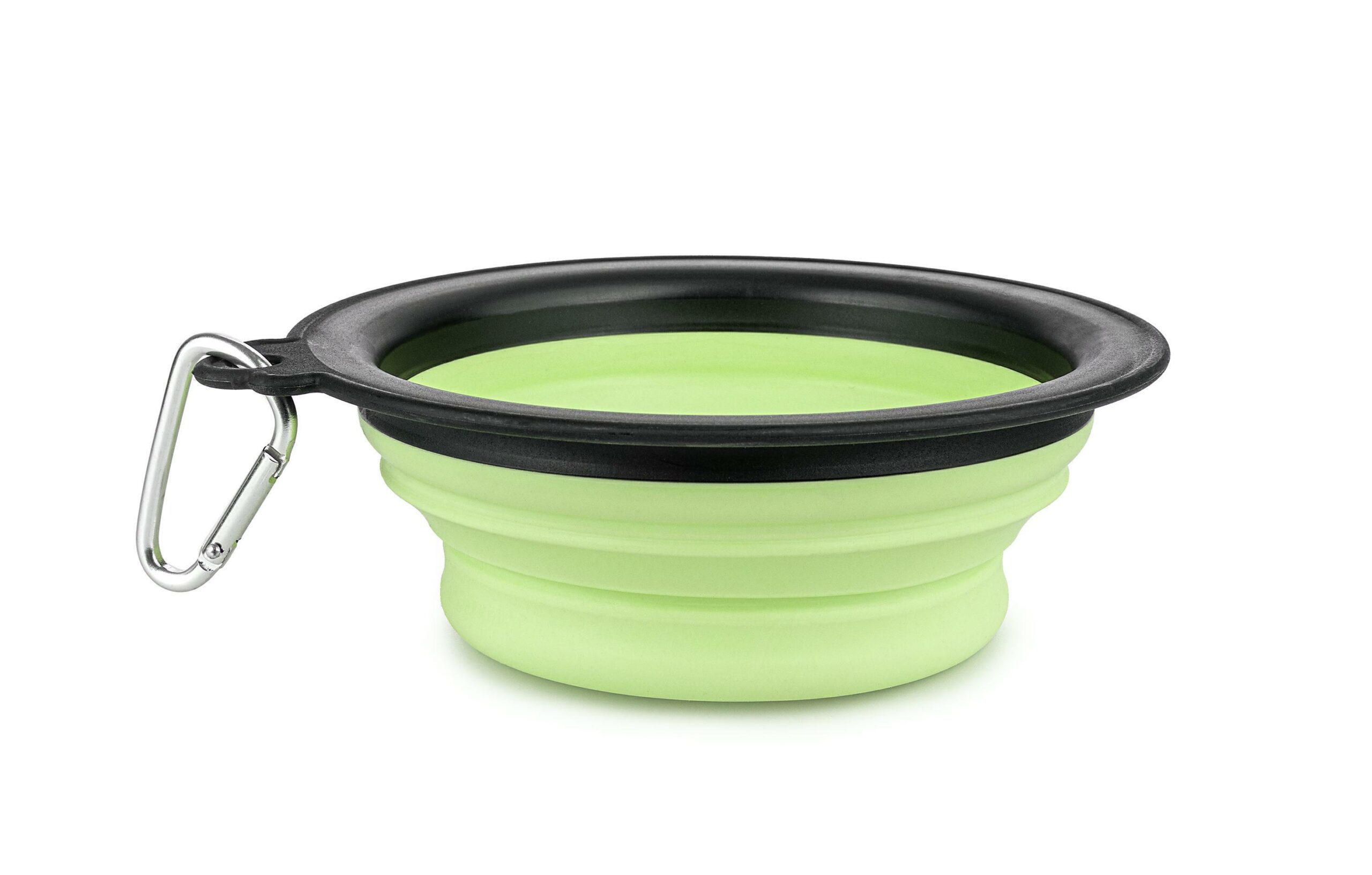 Praktyczna podróżna miska składana wykonana jest trwałego, miękkiego silikonu. Odpowiednia do podawania wody lub jedzenia. W komplecie znajduje się metalowy karabińczyk, za pomocą którego można przymocować miskę np. do plecaka.