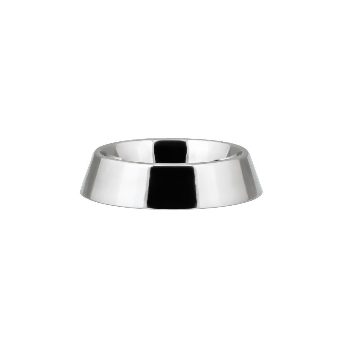 Metalowa miska w kolorze srebrnym, z błyszczącym wykończeniem, wykonana ze stali nierdzewnej.