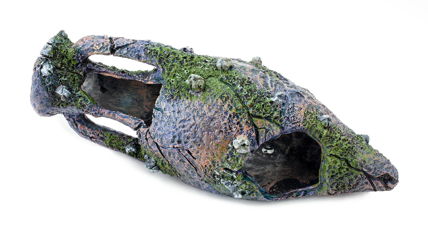 Ozdoba akwariowa wykonana z łatwo tonącego i bezpiecznego dla ryb, oraz innych zwierząt wodnych, poliestru.