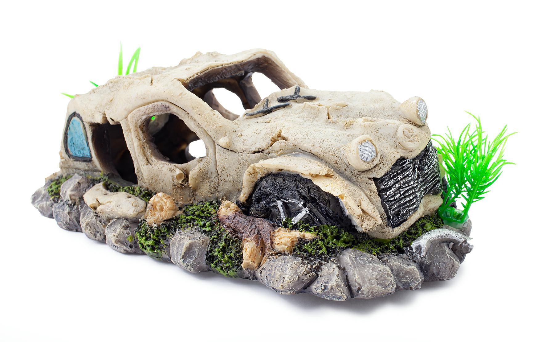 Ozdoba akwariowa wykonana z łatwo tonącego i bezpiecznego dla ryb, oraz innych zwierząt wodnych, poliestru.