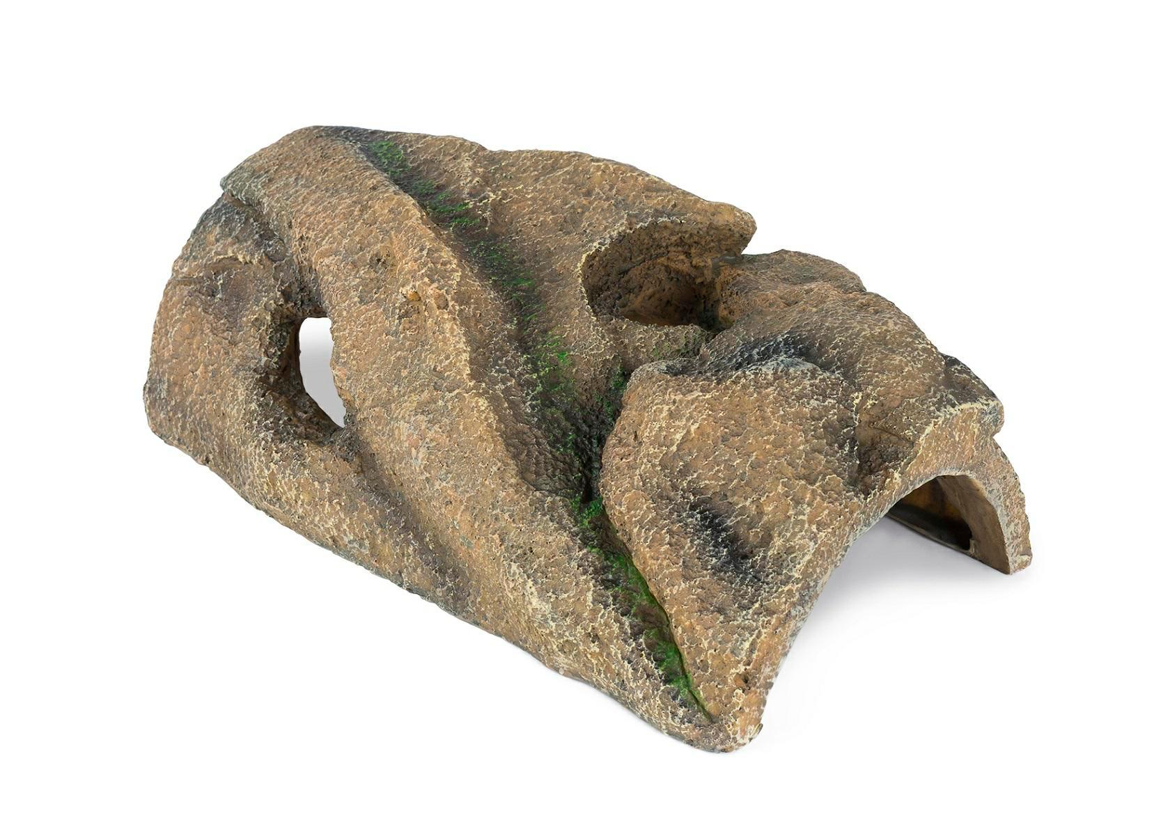 Duża kryjówka do terrarium w kształcie skalnej groty. Wielkość kryjówki czyni ją idealnym schronieniem dla dużych żab (ropucha aga, buczek południowoafrykański), średnich rozmiarów jaszczurek (agama karłowata, gekon lamparci, scynk krokodylowy), wielu popularnych węży (wąż zbożowy, lancetogłowy, pyton królewski) oraz większych skorupiaków (krab tęczowy). Minimalizuje stres, ułatwia aklimatyzację w nowym terrarium i zapobiega wywołanej stresem środowiskowym anoreksji. W przypadku gatunków stadnych, dostarcza schronienia słabszym i mniejszym osobnikom, minimalizując napięcia w grupie. Szorstka powierzchnia kryjówki pomaga w ścieraniu pazurów i zrzucaniu wylinki.