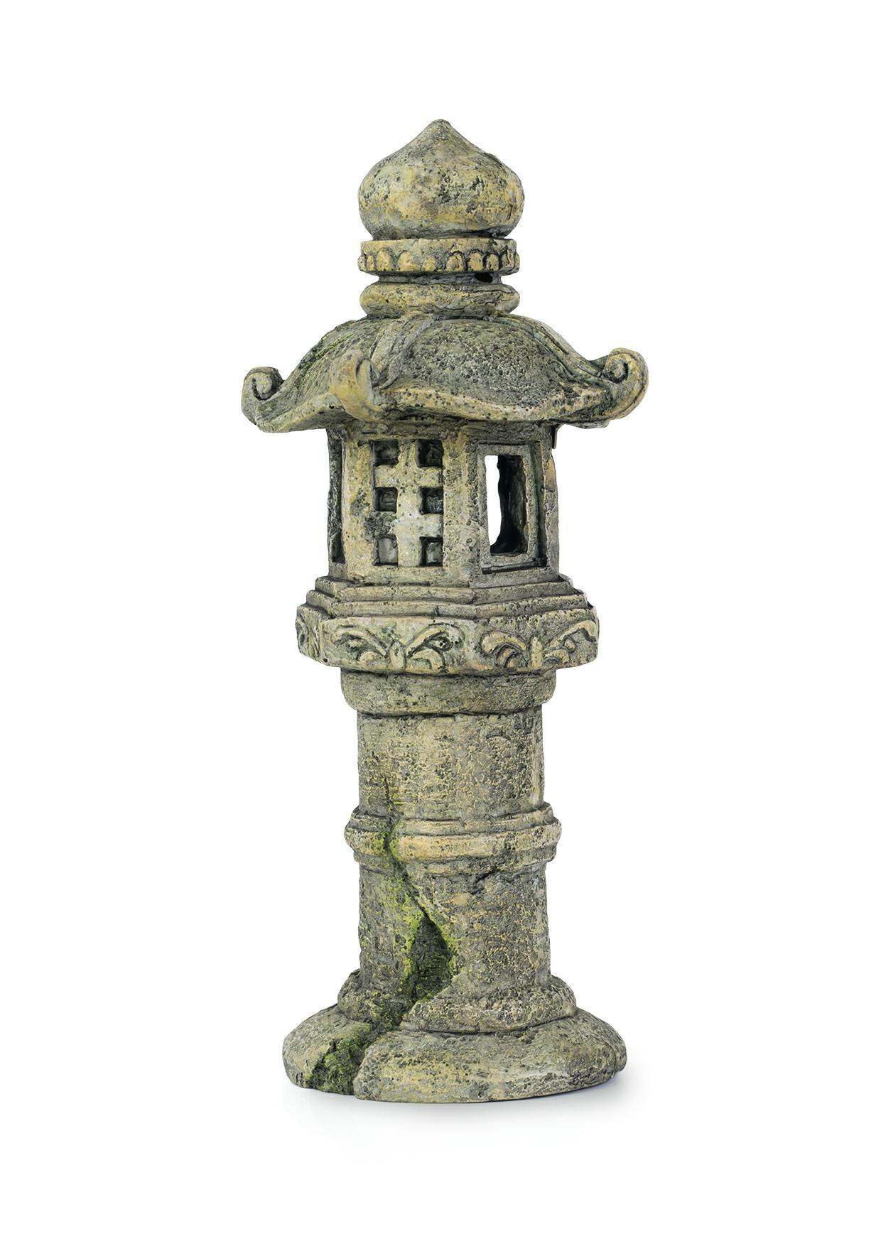 Niebanalna ozdoba i gratka dla wszystkich miłośników Orientu. Inspirowana sztuką Dalekiego Wschodu, nada Twojemu zbiornikowi lub terrarium oryginalnego, nietuzinkowego charakteru. Szczególnie polecana dla akwariów, zamieszkiwanych przez ryby pochodzące ze wschodniej i południowej Azji (żółtaczek indyjski, bojownik wspaniały, gurami mozaikowy, wielkopłetw wspaniały, bocja wspaniała, długowąs azjatycki, kardynałek chiński, danio pręgowany, brzanka sumatrzańska). To właśnie na tym obszarze 2 tysiące lat temu, narodziła się akwarystyka. Posążek subtelnie nawiązuje do tradycji pierwszych akwarystów, hodujących ozdobne ryby (w tym popularne ,,welonki” tj. karasie ozdobne) w przypałacowych i przyświątynnych oczkach wodnych. Wykonana wyłącznie z nietoksycznych i neutralnych chemicznie materiałów, nie zmienia pH ani twardości wody. Dostarcza miejsca do złożenia ikry, a także przyczepu dla słabo pływających, świeżo wyklutych ryb. Ozdoba równie dobrze sprawdzi się w terrariach i paludariach z azjatyckimi ptasznikami (Poecilotheria, Cyriopagopus, Chilobrachys, Haplocosmia), płazami (kumak dalekowschodni, traszka chińska, traszka japońska) oraz wężami (wąż chiński, wąż amurski, wąż bambusowy, wąż mandaryński, połoz japoński).