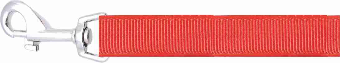 Smycz wykonana jest z podwójnej szerokiej, mocnej taśmy nylonowej. Wyposażona w mocne, metalowe zapięcie.