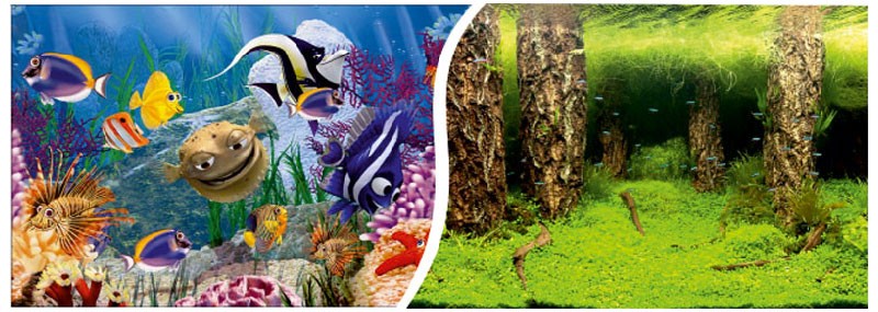 Tła dekoracyjne w rolce są uniwersalne, mogą być używane w każdym akwarium, występują w kilku rozmiarach, na długość można je przyciąć. Szeroka gama dostępnych wzorów daje możliwość dopasowania do indywidualnych potrzeb, pozwala osiągnąć efekt wymarzonej scenerii. Naklejone na tylną ścianę tworzy bardzo ciekawą kompozycję wraz ze zwierzętami i roślinami znajdującymi się wewnątrz. Wykonane z tworzywa sztucznego odpornego na wilgoć i odkształcania. Folia nie blednie, na długo zachowuje swoje kolory. Jest bardzo łatwa w montażu.
