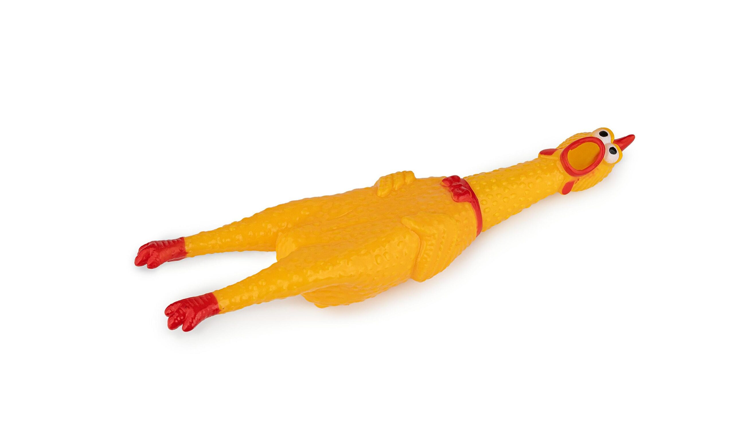 Kto choć raz odwiedził Internet, ten wie, jak wygląda ta zabawka. Śmieszny design i bardzo głośna piszczałka odpowiadają za jego popularność- w końcu jest bohaterem niejednego filmiku na YouTube. Oprócz swojej sławy ma do zaoferowania coś więcej, czyli frajdę Twojego pupila. Gumowym kurczakiem pies może bawić się godzinami, ponieważ głośne piszczenie z pewnością będzie podtrzymywać jego zainteresowanie. Dodatkowo, choć kury to nieloty, ten rodzaj drobiu wyjątkowo potrafi wzbijać się w powietrze. Dzieje się to jednak tylko podczas zabawy w aportowanie. Oczywiście są to tylko propozycje użycia, bo w kwestii wykorzystania gumowego kurczaka ogranicza nas tylko wyobraźnia.