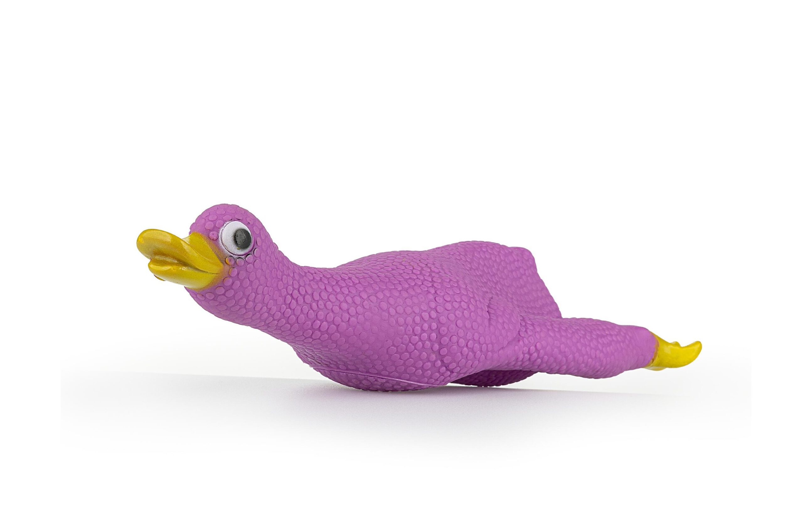 Kto choć raz odwiedził Internet, ten wie, jak wygląda ta zabawka. Śmieszny design i bardzo głośna piszczałka odpowiadają za jego popularność- w końcu jest bohaterem niejednego filmiku na YouTube. Oprócz swojej sławy ma do zaoferowania coś więcej, czyli frajdę Twojego pupila. Gumowym kurczakiem pies może bawić się godzinami, ponieważ głośne piszczenie z pewnością będzie podtrzymywać jego zainteresowanie. Dodatkowo, choć kury to nieloty, ten rodzaj drobiu wyjątkowo potrafi wzbijać się w powietrze. Dzieje się to jednak tylko podczas zabawy w aportowanie. Oczywiście są to tylko propozycje użycia, bo w kwestii wykorzystania gumowego kurczaka ogranicza nas tylko wyobraźnia.