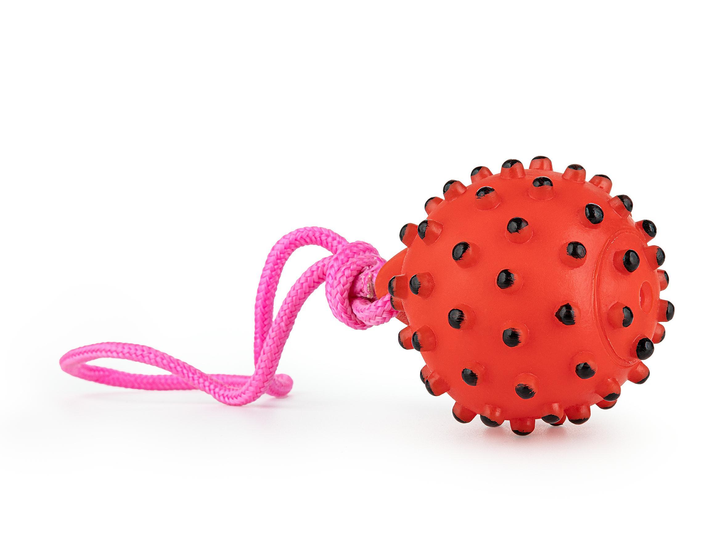 Piszcząca zabawka ze sznurkiem pozwoli nam na wspólną zabawę z psiakiem w postaci przeciągania lub innych zabaw siłowych. Gdy my mamy się czym zająć, a nuda dopada akurat naszego pupila, zabawka pozwoli mu na długotrwałą zabawę w pojedynkę. Piszczałka umieszczona w środku gumowej maczugi jest elementem stymulującym, dzięki czemu nasz psiak nie straci zainteresowania zbyt szybko.