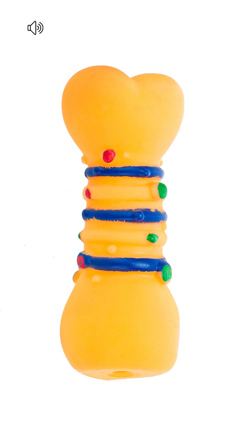 Zabawka dla psa w kształcie beżowego małego hantla.