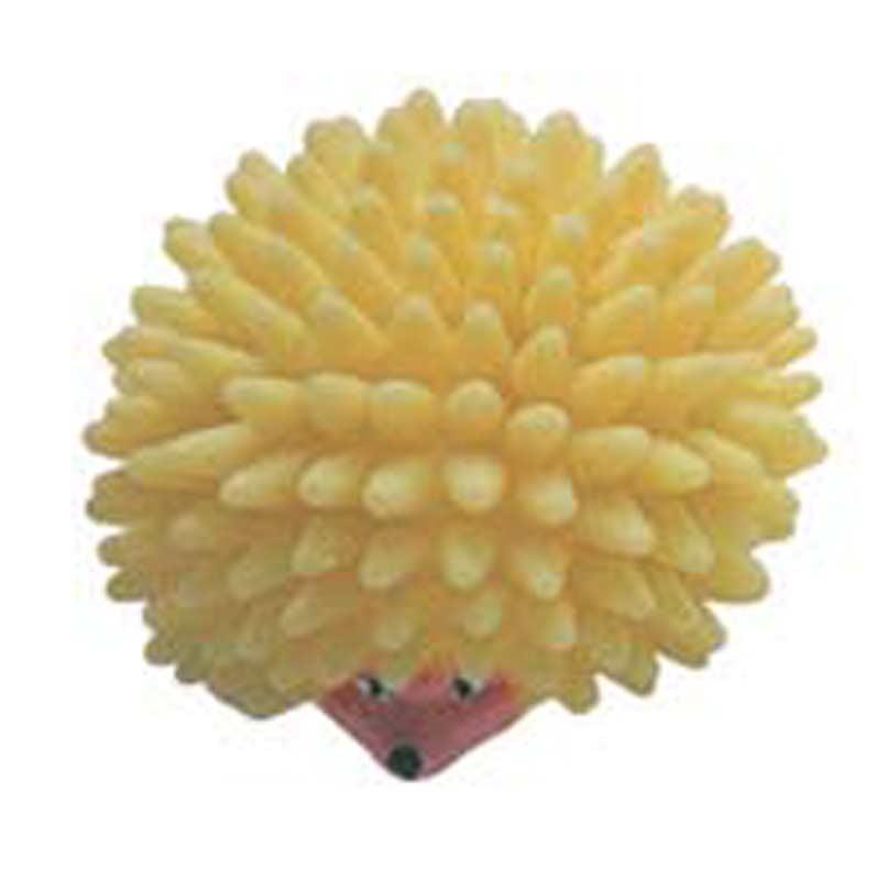 Mała zabawka dla psa w kształcie małego, zabawnego jeża w kolorze żółtym.