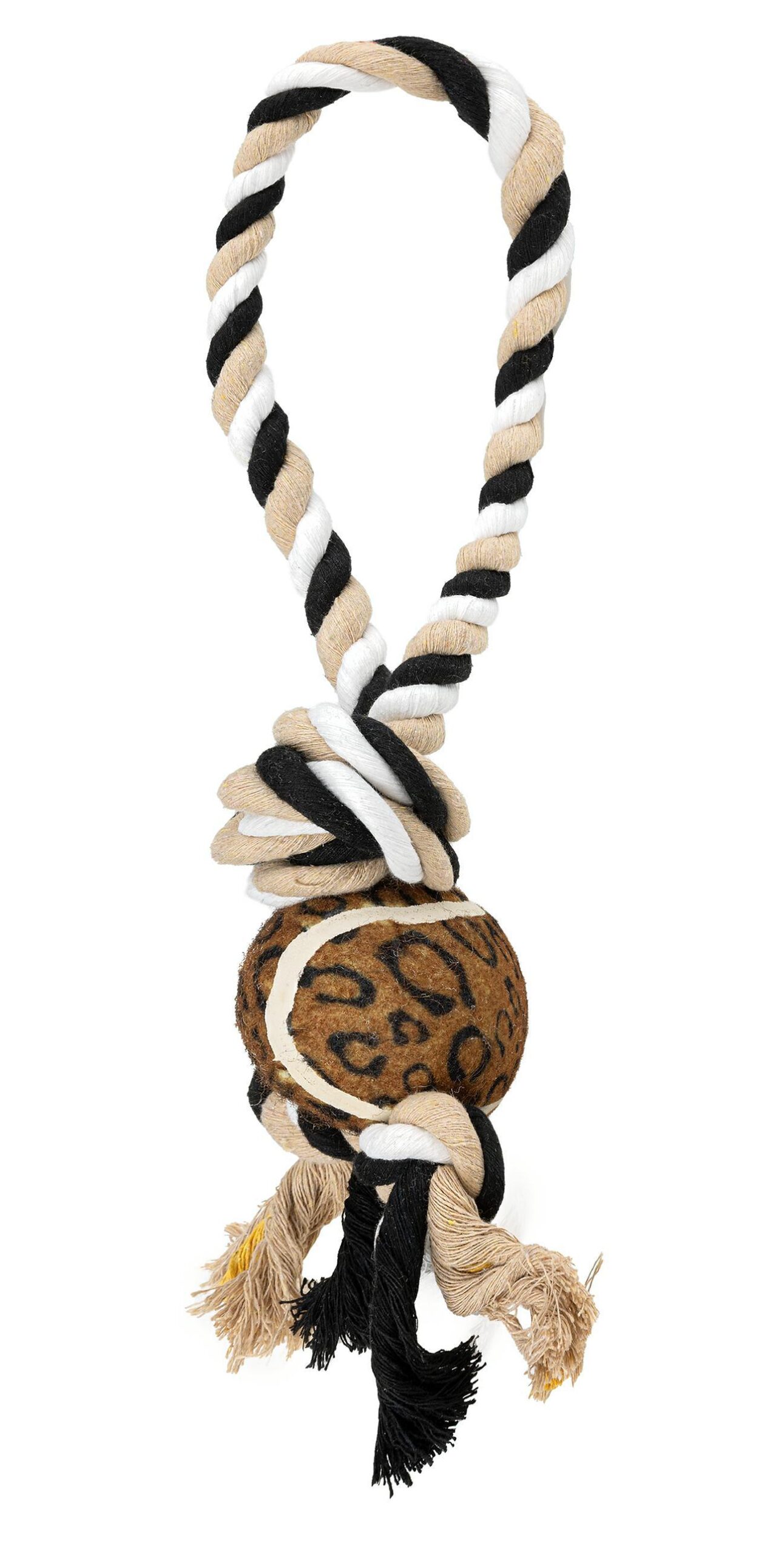 Wykonana z wytrzymałego sznurka, zawiązanego w petlę, z piłką. Solidny splot przetrwa nawet wielogodzinne gryzienie i szarpanie, co dodatkowo pomaga zachować higienę jamy ustnej pupila – podczas żucia sznurka włókna dostają się między zęby efektywnie je czyszcząc. Produkt świetnie sprawdza się podczas zabaw w aportowanie i przeciąganie, oraz umila czas czworonożnym pupilom w czasie oczekiwania na powrót właściciela. Zabawka przeznaczona jest dla dużych psów.