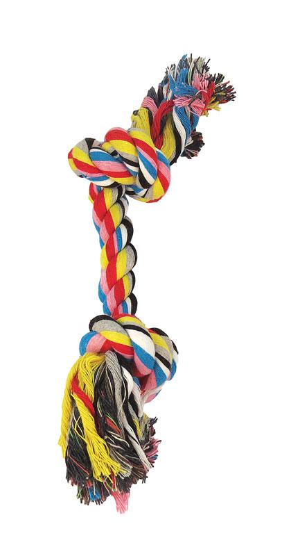 Zabawka wykonana jest z plecionego, kolorowego i bardzo wytrzymałego sznura z naturalnej bawełny.